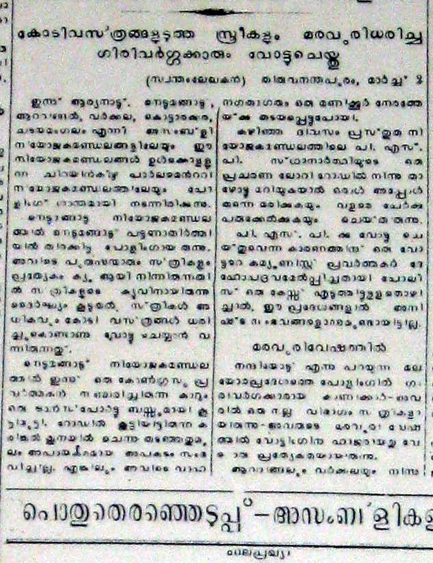 കേരളത്തിലെ ആദ്യ തെരഞ്ഞെടുപ്പ്