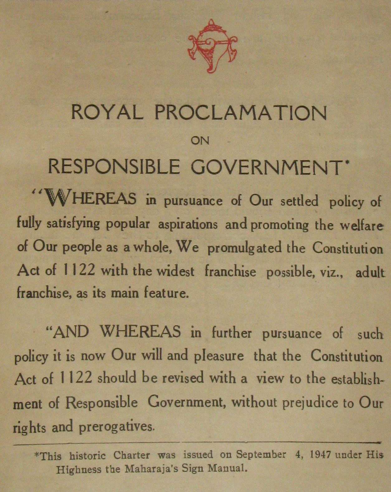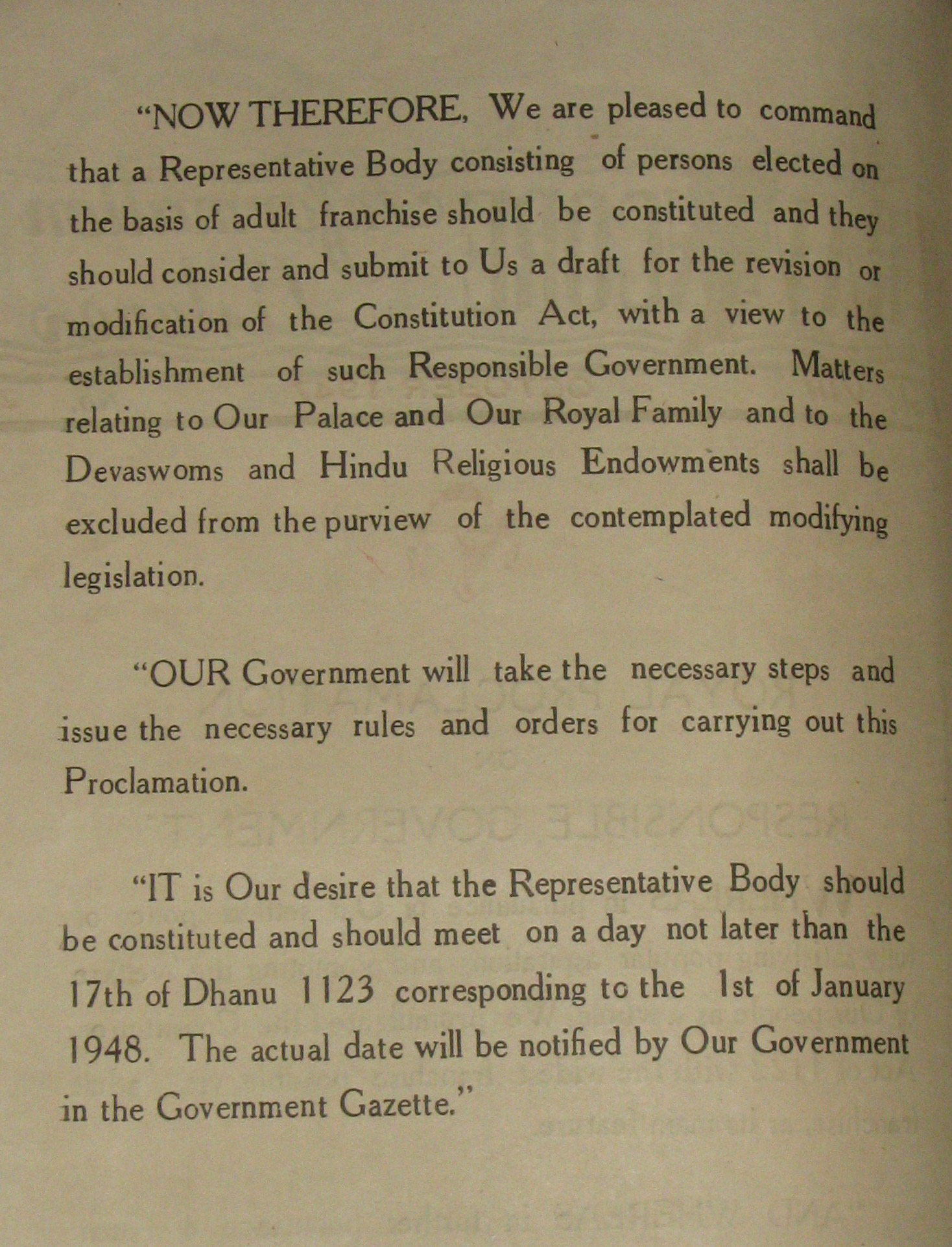 ഇതോടെ മദ്രസിന്റെ ഭാഗമായ മലബാറിലും രാജാക്കډാര് ഭരിച്ച തിരുവിതാംകൂറിലും കൊച്ചിയിലും കരംതീരുവ ഉള്ളവര്ക്ക് വോട്ട വകാശം ലഭിച്ചു. എന്നാല് സ്വാതന്ത്ര്യ ലബ്ധിക്കുശേഷമേ സകലര്ക്കും പായപൂര്ത്തി വോട്ടവകാശം ലഭിച്ചുള്ളു.