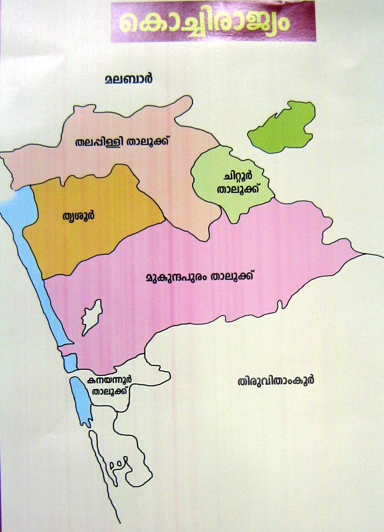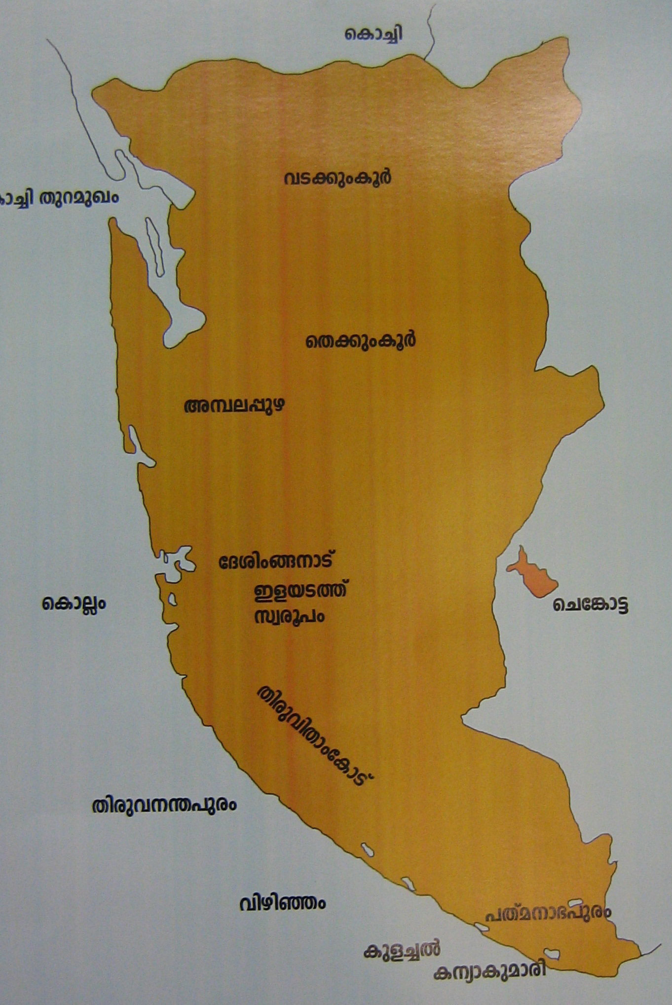 അന്നത്തെ കേരളം അഥാവാ മലബാര് എന്ന് വിദേശികള് വിളിച്ചിരുന്ന മലയാളക്കരയില് തെക്ക് വേണാട്(തിരുവിതാംകൂറും മധ്യഭാഗം കൊച്ചി അതിനപ്പുറം കോഴിക്കോട് സാമുതിരി രാജ്യം വടക്കേ അറ്റം കോലത്തുനാട് എന്ന വലിയ നാടുകളും അനേകം ചെരിയ നാടുകളുമായി ചിതറിക്കിടക്കുകയായിരുന്നു.